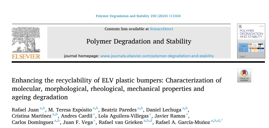 The CIRPLACAR project has published a new article titled “Enhancing the recyclability of ELV plastic bumpers: Characterization of molecular, morphological, rheological, mechanical properties and ageing degradation” in Polymer Degradation and Stability Journal. This study investigates post-consumer end-of-life vehicle (ELV) bumpers, showing that blends of recycled and virgin polypropylene can maintain high performance without additional additives, […]